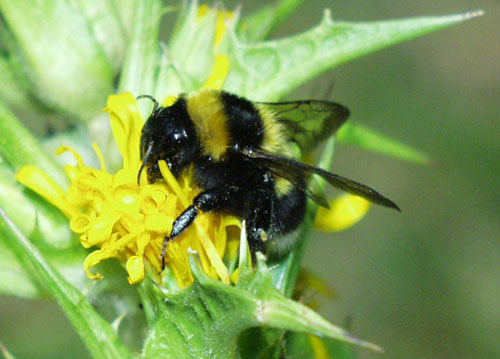 Il Bombus terrestris, o bombo comune, appartiene ad un gruppo di api sociali, comprendente circa 300 specie. Il suo corpo può essere lungo fino a 3 centimetri ed è di forma tozza ricoperto di fitti peli. La prima cura della femmina dopo il periodo invernale è la ricerca e la costruzione del nido, oltre a rinvigorirsi succhiando il nettare dei primi fiori sbocciati. Successivamente, dopo aver raccolto nettare e polline, depone le uova. I primi nati sono femmine sterili che aiutano la madre nella raccolta del polline ed a ripulire il nido. Dalla fine di Luglio nascono piccole femmine che daranno vita ad uova non fecondate da dove nasceranno esemplari maschi. Solo verso la fine dell’estate compaiono femmine più grosse, fecondate dai maschi. In autunno con i primi freddi, tutti i membri della colonia muoiono ad eccezione delle femmine feconde, che dopo l’inverno costruiranno un nuovo nido nella primavera successiva.